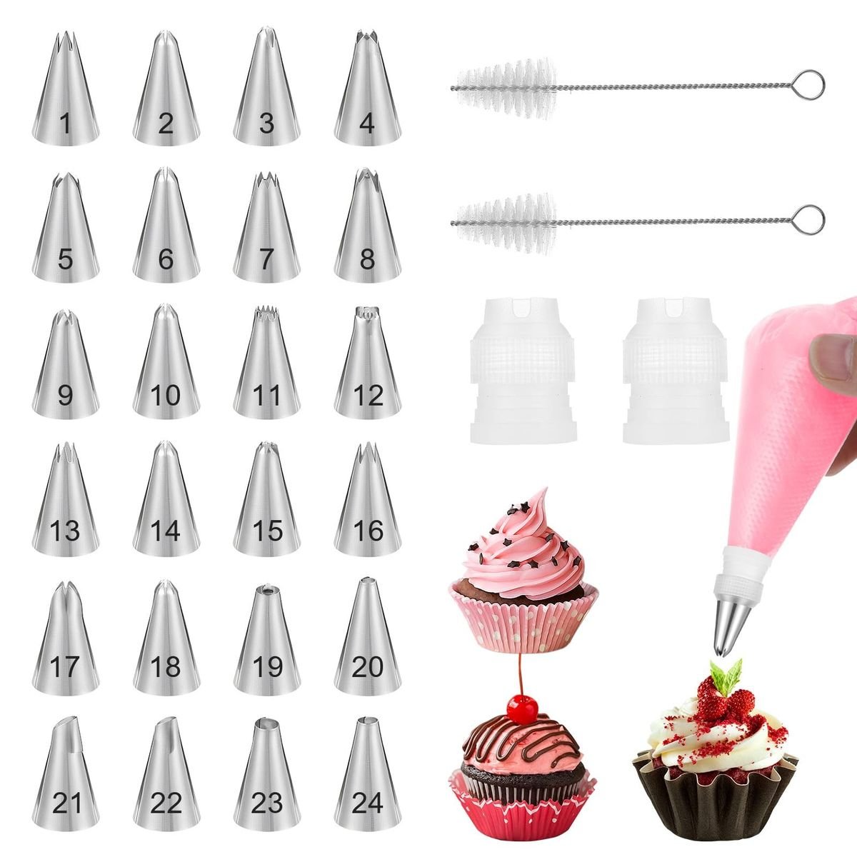 Complete kit with piping bags, nozzles, and tips — perfect for decorating cakes and cupcakes.